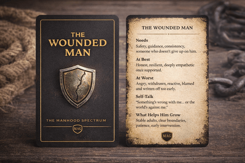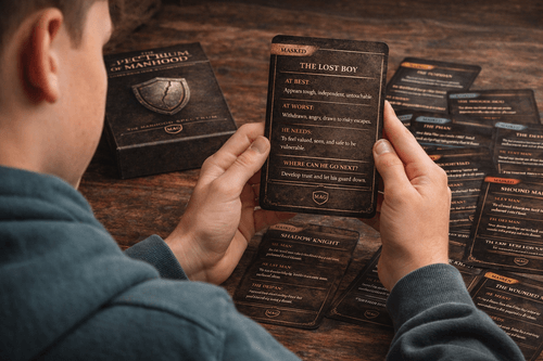 This 50-card deck helps people understand behaviour as communication, not identity. Each card represents a location on a journey, shaped by pressure, experience, trauma, guidance, and accountability. It shows that manhood is not fixed — and that harmful patterns can be named before they escalate.